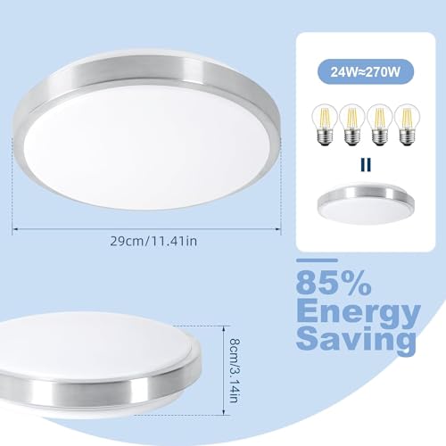 ✔️[Plafoniera LED Soffitto] Potenza: 24W, equivalente a una lampada a incandescenza da 270W, consente un risparmio energetico superiore al 90%. Diametro: 25 cm. temperatura di colore: 6500K, luce bianca fredda.