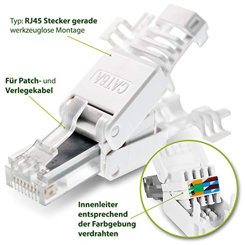 Toolless - 10 connettori di rete RJ45 CAT6A, cavo LAN fino a 7,5 mm, senza attrezzi, cat. 7, cat. 6, cat. 5
