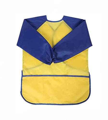 Tooloflife Grembiule impermeabile per bambini, a maniche lunghe, per pittura, cottura, cucina, taglia S, età 3-5 anni, colore: giallo blu
