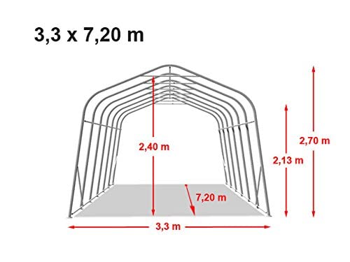 IN BREVE: Tenda Garage Professionale con Statica collaudata, garanzia su carici di neve e di vento, inclusa di costruzione in acciaio, telo del tetto, teli frontali con finestre per la ventilazione, picchetti e istruzioni di montaggio