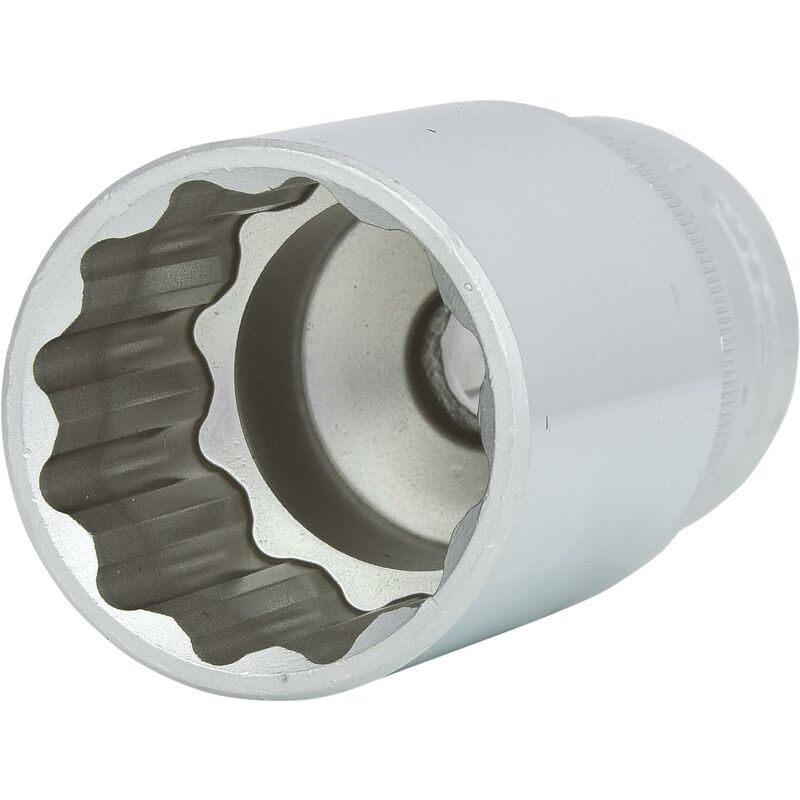 Ideale per allentare e fissare dadi di fermo, per esempio alberi di trasmissione anteriore e posteriore, su cuscinetti ruota e su flangia trasmissione o differenziale Poligonale Profilo FlankTraction Quadro femmina a norma DIN 3120 / ISO 1174 con sede per sfera di tenuta Finitura lunga Per utilizzo manuale Cromata opaca Cromo-vanadio Campi di applicazione: Fiat Punto / Seicento, Ford Fiesta / Fusion / Mondeo, Mercedes Classe C (W204) / Classe S (W140), Nissan Almera, Opel Astra H / Vivaro, Subaru Outback, ecc. Azionamento quadro in pollici 1/2 Lunghezza totale L in mm 82 Standard DIN 3120, ISO 1174, DIN 3124, ISO 2725-1 Profondità T in mm 36.0 Profilo 1 12-Kant Diametro D1 43 Peso del tessuto 371 Diametro D2 35 Dimensioni dell'imballaggio 1 Materiale1 Feinster Chrom Vanadium Stahl, matt satiniert verchromt Esterno 12 quadrato 32.0