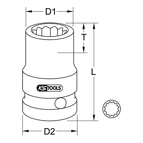 KS Tools 515.1566 Bussola poligonale 3/8" per avvitatori ad impulsi, corta, 21 mm