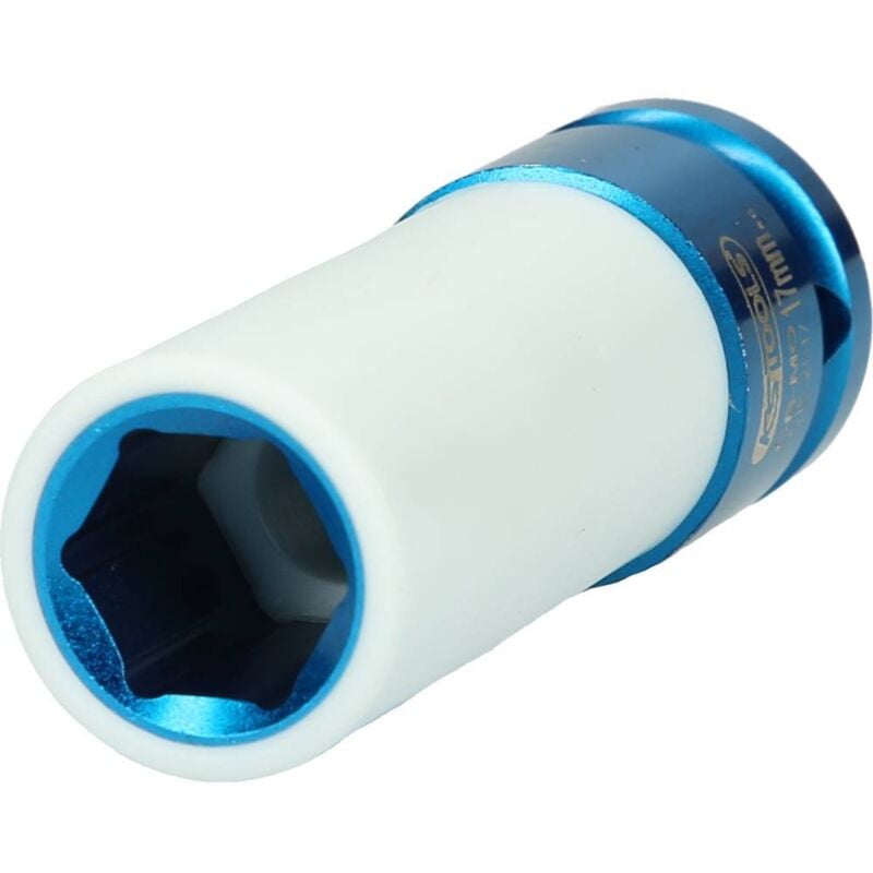 Speciale per il montaggio o smontaggio della ruota Esagonale Quadro femmina a norma DIN 3121 / ISO 1174 Finitura lunga Utilizzo con avvitatori Rivestite in plastica per non danneggiare i cerchi in lega Boccola in plastica intercambiabile Codificazione colorata in base alla larghezza della chiave Cromo-molibdeno Profondità T in mm 23.0 Diametro D1 24.0 Peso del tessuto 231 Diametro D2 30.0 Dimensioni dell'imballaggio 1 Materiale1 Feinster Chrom Molybdän Stahl Larghezza tra le piastre in mm 17,0 Azionamento quadro in pollici 1/2 Lunghezza totale L in mm 85.0 Standard ISO 1174, DIN 3121 Profilo 1 6-Kant Manicotto di ricambio 515.2030 Colore blau