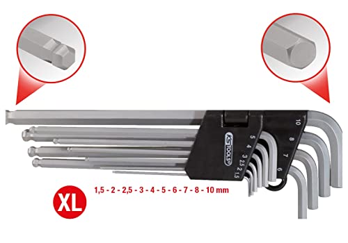 KS Tools 151.3200 Serie di chiavi maschio esagonali piegate a testa sferica in supporto a clip, 10 pz