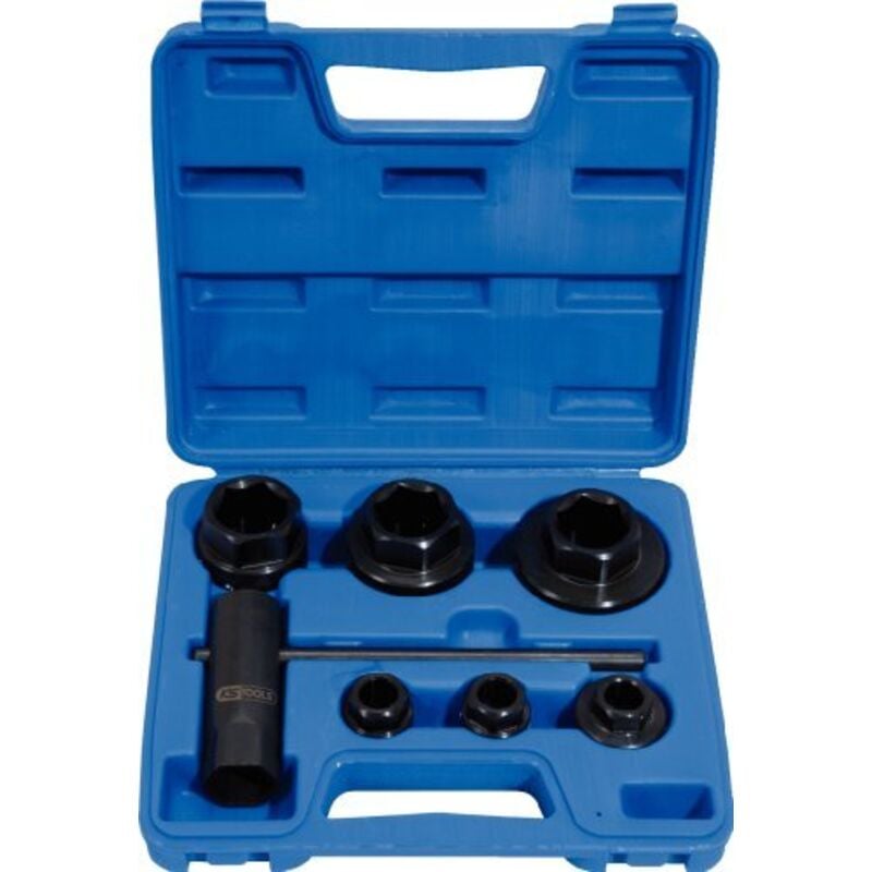 Impiego universale per filiere rotonde a norma DIN EN 22568 forma B Versione sottile Ideali per zone di difficile accesso Attacco quadro femmina a norma DIN 3120 / ISO 1174 con sede per sfera di tenuta Inclusa prolunga e leva Acciaio speciale per utensili In robusta valigetta di plastica Standard DIN 3120, ISO 1174, DIN EN 22568 Form B Pezzi in set 8 Peso del tessuto 1940 Imballaggio Kunststoffkoffer, extra robust Dimensioni dell'imballaggio 1 Forma schlanke Bauform Materiale1 Spezial-Werkzeugstahl