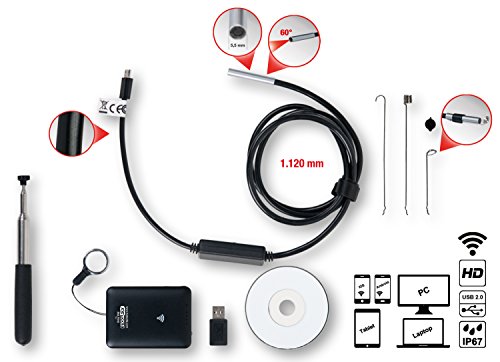 KS Tools 550.7510 Kit videoscopio Wi-Fi con Ø 5,5 mm 0° HD sonda telecamera frontale, 7 pz