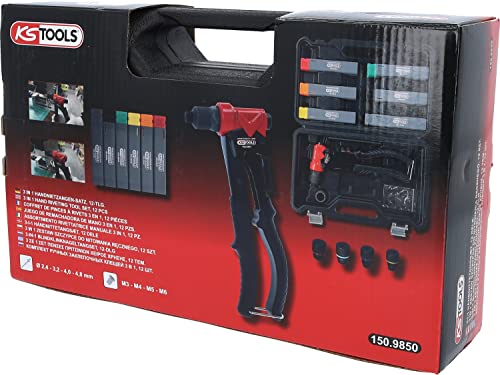 KS Tools 150.9850 Set di pinze per rivetti 3 in 1, 12 pezzi.