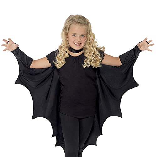 PW TOOLS Accessorio per Costume Ali di Pipistrello per Bambini, Mantello di Pipistrello per Bambini, Costume Cosplay Ali di Pipistrello Vampiro di Halloween, per Feste a Tema di Halloween, Nero