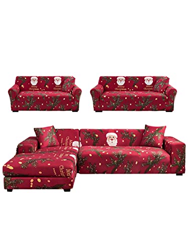 PW TOOLS Copridivano Elastico 2/3/4 Posti, Copridivano Antiscivolo Natalizio all-Inclusive, Copridivano Elasticizzato con Motivi Natalizi, Copridivano per Mobili, Decorazioni Natalizie