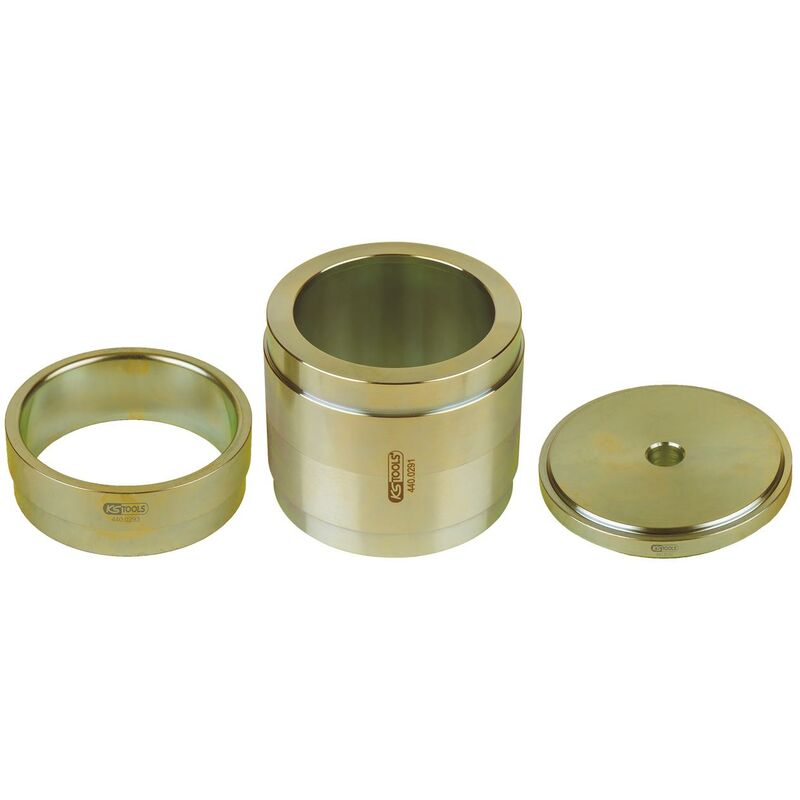 Per il montaggio e lo smontaggio dei silentblock doppi VAG Applicazione facile e sicura In combinazione con una pressa da officina Acciaio speciale per utensili Campi di applicazione: Volkswagen Caddy 2004 - 2010, Eos > 2006, Golf V 2003 - 2009, Scirocco > 2005, Jetta 2005 - 2010, Passat 2005 - 2010, Tiguan > 2007, Touran > 2003, Seat Altea > 2004, Leon > 2005, Toledo 2004 - 2009, Škoda Octavia 2004 - 2010, Audi A3 > 2005, TT 2006 - 2010