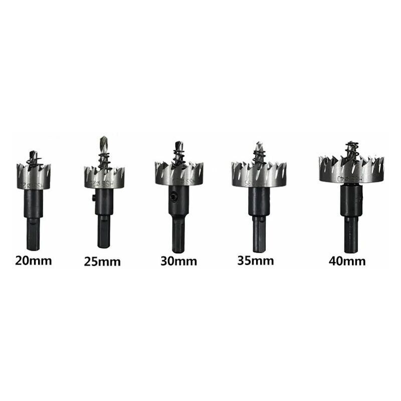 Set 5 frese seghe fresa a tazza Frese a corpo unico in acciaio HSS per forare legno plastica cartongesso. Profondità di Foratura 40 mm Misure Frese: 20 - 25 - 30 - 35- 40 mm Contenuto della confezione: N. 5 frese a tazza