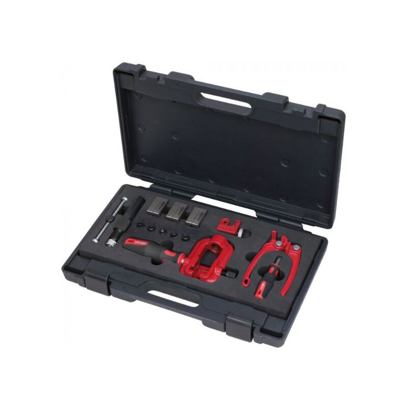 Dettagli: Dimensione modulo schiuma 1/3 Vite di potenza idraulica Impedisce lo smontaggio del tubo Non danneggia i tubi trattati Per tubi in acciaio, alluminio e rame Consente la creazione del raccordo svasato Riduce il rischio di rottura del tubo Fornito con tagliatubi da 3-16 mm, piegatore, sbavatore interno da 3-40 mm e ganasce e nippli da 4,75 - 5 - 6 mm Caratteristiche: Dimensioni: L.390 x L.188 x H.35 mm Parti del set: 16 pezzi Dimensioni del modulo: Modulo 1/3 Uso generale: VEICOLI Codice EAN: 4042146373248 Peso: 3,13 kg