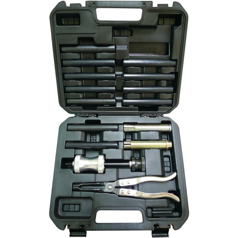 Permette il montaggio e lo smontaggio sicuri di anelli di tenuta degli steli delle valvole Impiego universale Lavoro senza danni grazie all'inseritore in plastica resistente Compresi pinza di estrazione extra lunga e estrattore a percussione con pinze a nastro In robusta valigetta di plastica Applicazione per universal Pezzi in set 16 Peso del tessuto 3360 Imballaggio Kunststoffkoffer, extra robust Dimensioni dell'imballaggio 1