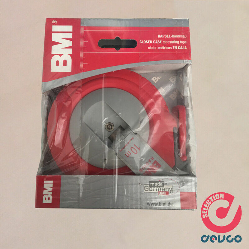 Rotella bindella metrica 10m H 5109 0010 BMI Costruite secondo le direttive europee 2014/32/EU Esecuzione «A»: la graduazione inizia dopo 10 cm dall'anello terminale in acciaio Con custodia in resina sintetica antiurto con superfici "soft-touch" per una comoda presa Manovella pieghevole ribaltabile da un lato all'altro per impiego anche per mancini ±2,3 mm/10 m) Tipo con nastro in fibra di vetro Graduazione nera in cm su una faccia - Classe II I primi 10 cm sono graduati in millimetri Numerazione in rosso per ogni metro Ripetizione dei metri ogni decimetro Lunghezza nastro 10mtLarghezza nastro 13mm
