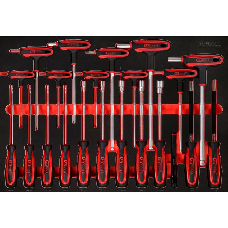 KS TOOLS Serie di impugnature a T e giraviti nell'inserto in schiuma, 22 pz