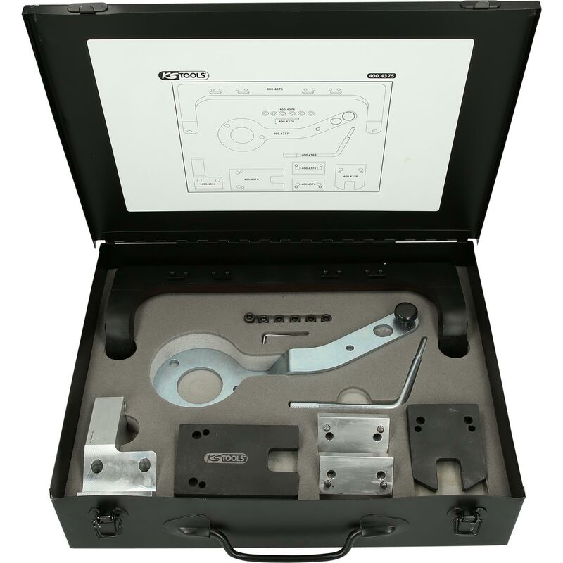 Per la riparazione professionale del motore Per la sostituzione della catena di distribuzione Elevata adattabilità In robusta cassetta metallica Campi di applicazione: BMW serie 1 F20/F21 (2015 - 2017), serie 2 F22/F23/F45/F46 (2014 - 2017), serie 3 F30/F31/34/36 (2015 - 2017), serie 4 F32/F33/F36 (2015 - 2017), serie 7 G11/G12 (2015 - 2017), i8 I112 (2014 - 2017), X1 F48 (2015 - 2017), Mini Clubman F54 (2015 - 2017), Cabrio F57 (2016 - 2017) e Mini coda spiovente F55/F56 (2014 - 2017) con motori a benzina 1.2 l, 1.5 l, 2,0 l e 3.0 l (codice motore: B38 A12A / B38 B15A / B38 A15A / B38 K15A / B48 B20A / B48 B20B / B48 A20A / B48 A20B / B48 / B58 B30A)
