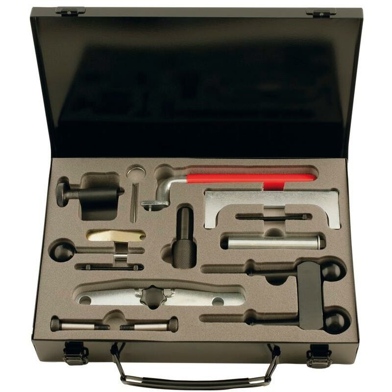 Per la riparazione professionale del motore Per il bloccaggio dell'albero a camme Per la sostituzione della puleggia dentata Elevata adattabilità In robusta cassetta metallica Campi di applicazione: Audi A2 con motori 1,2, 1,4, TDI A3 con motori 1,9 TDI (> 1996), A3, A4, A6 con motori 1,9 TDI (>1999), Seat Toledo con motori 1,9 TDI (>1999), Škoda Octavia con motori 1,9 SDI/TDI (>1996), Volkswagen Golf, Bora con motori 1,9 SDI/TDI, New Beetle con motori 1,9 TDI (>1997), Lupo con 3L 1,2 TDI, Lupo, Polo 1,4 TDI, Golf, Bora motori 1,9 TDI (>1999)