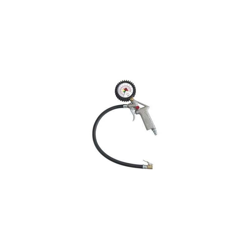 Strumento per controllo pressione dei pneumatici ART. E1139/94 Marchio: ABC Manometri con protezione in gomma antiurto Impugnatura con levetta e pulsante per lo scarico, per impiego con una sola mano Tubo flessibile lunghezza 400 mm completo di testina per gonfiaggio Impugnatura con gancio integrato per appendere lo strumento Manometro Ø 63 mm, con scala 0÷12 bar - Attacco filettato Gas Tipo analogico Pressione max. 8 bar - Divisione 0,1 bar