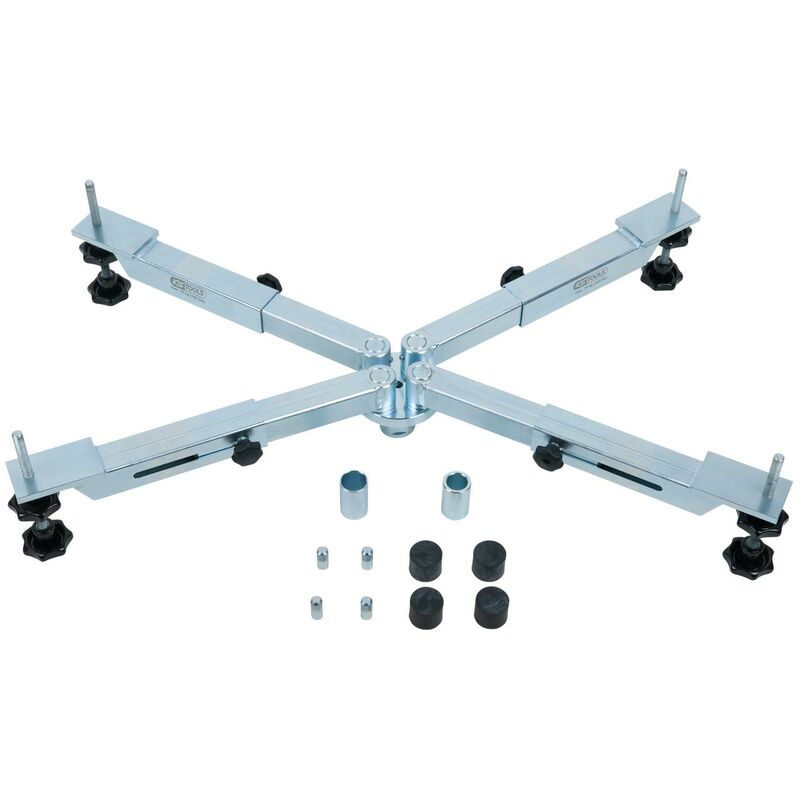 Ideale per il montaggio / smontaggio di motori, trasmissione e telai ausiliari Adatto a sollevatori con diametro di attacco di 25, 30 e 35 mm Con quattro bracci regolabili in lunghezza e orientabili lateralmente Fino a max. 75 kg Disco di supporto regolabile in altezza con rivestimento antiscivolo Di facile utilizzo per un montaggio veloce Struttura robusta Acciaio speciale per utensili