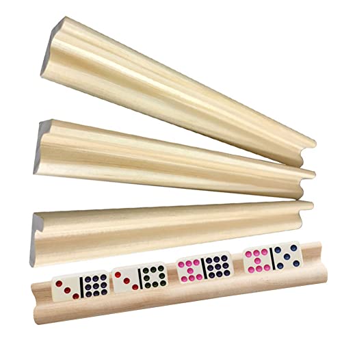 PW TOOLS Titolari Domino portatili - Set di 4 piccole staffe portatili in legno solido,Domino Rack Set Vassoi per Bambini Gioco Domino, Treno Messicano, Mahjong (Domino Non Incluso)