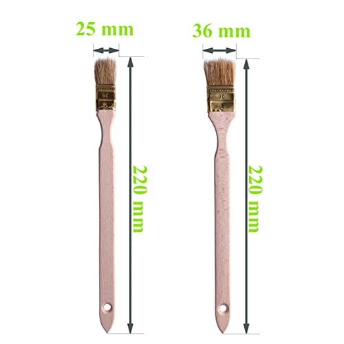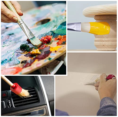 Durevole: I pennelli hanno una struttura solida e non interromperanno il tuo lavoro danneggiandosi facilmente. Le setole di maiale naturali e dense non cambiano la loro struttura e sono saldamente attaccate al manico grazie al cappuccio in plastica o metallo e alla forte colla bicomponente.