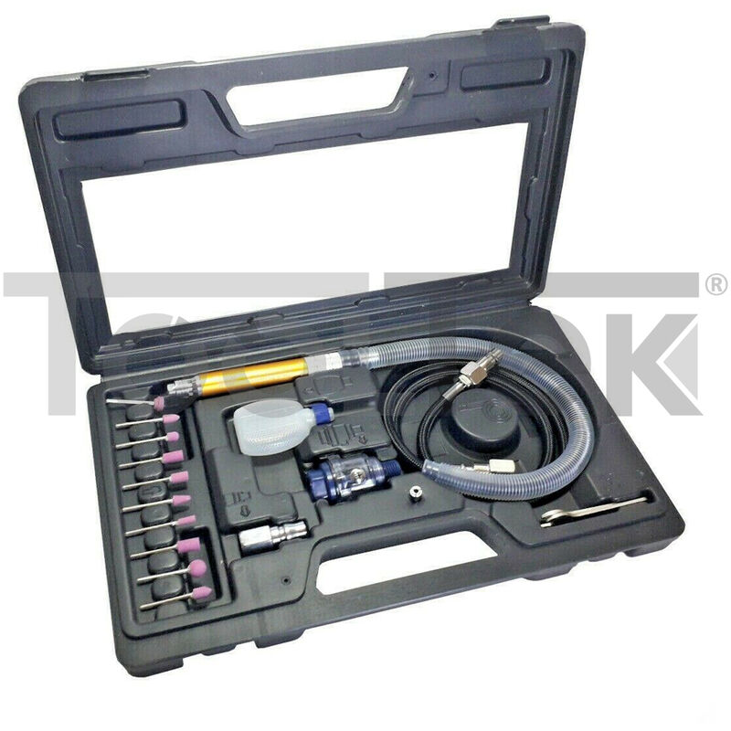 Smerigliatrice pneumatica completa di tutti gli accessori.Sarete in grado di rimuovere facilmente i bordi del materiale, produrre una finitura superficiale su tutte le lavorazioni in metallo e affrontare la molatura, lucidatura delle opere. CARATTERISTICHE: Velocità: 0-54000 giri/min Gambo frese: 3 mm Connessione aria compressa: 1/4 Connessione tubo flessibile: 3/8'' Consumo d'aria: 21 L/min Pressione di esercizio: 6,3 bar Contenuto della confezione: Smerigliatrice10 Frese / mole3 innesti vari attacciFiltroContenitore olio2 ChiaviCustodia. Prodotto di qualità LA FATTURA VIENE EMESSA PER IMPORTI SUPERIORI A € 20 E VA RICHIESTA AL MOMENTO DELL'ACQUISTO