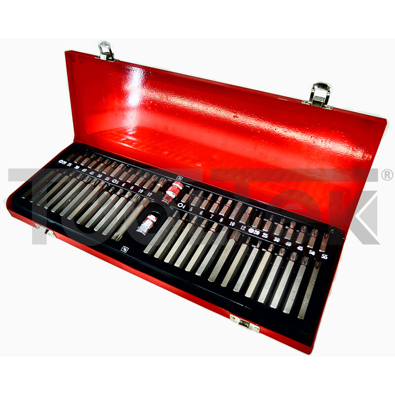 SET 54pz INSERTI PORTAINSERTI TORX-EXA-XZN LUNGHI CORTI IMPRONTA KIT BOX METALLO KIT INSERTI 54pz TORX-EXA-XZN LUNGHI E CORTI Set inserti con attacco esagonale 10mm con 2 adattatori a bussola per cricchetto da 1/2 e 3/8 . Ideale per professionisti, officine, e per il fai da te. Prodotto realizzato in lega di metallo cromato satinato. In cassetta di metallo con portainserti. Inserti attacco di tipo Grande da 10 mm e 2 Adattatori. Utilissimo set di inserti intercambiabili 54 pz TORX - EXA - XZN Materiale: Lega metallica satinataNel kit sono presenti:Nr. 7 pezzi 30 mm attacco esagonale: 4-5-6-7-8-10-12 mm Nr. 7 Pezzi 75 mm attacco esagonale: 4-5-6-7-8-10-12 mm Nr. 7 Pezzi 30 mm Torx: T 20-25-30-40-45-50-55 mm Nr. 7 Pezzi 75 mm Torx: T 20-25-30-40-45-50-55 mm Nr. 7 Pezzi 75 mm TorxH: T 20-25-30-40-45-50-55 mm Nr. 7 Pezzi 30 mm TorxH: T 20-25-30-40-45-50-55 mm Nr. 5 Pezzi 30 mm Spline / xzn: 5-6-8-10-12 mm Nr. 5 Pezzi 75 mm Spline / xzn: 5-6-8-10-12 mm Nr. 2 Adattatori 1/2 e 3/8