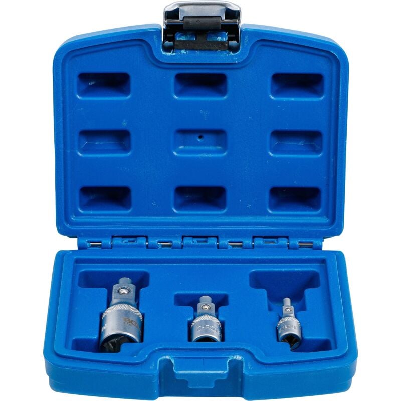 Un forte magnete tiene ferme le viti svitate nella bussola Oggetto della fornitura: Prolunga quadro interno/esterno 6,3 mm (1/4) Prolunga quadro interno/esterno 10 mm (3/8) Prolunga quadro interno/esterno 12,5 mm (1/2) Imballaggio adatto per essere appeso alla parete Ja Peso del tessuto 0.404 Dimensioni dell'imballaggio 1 Peso lordo 404 g Materiale (F) Chrom-Vanadium-Stahl