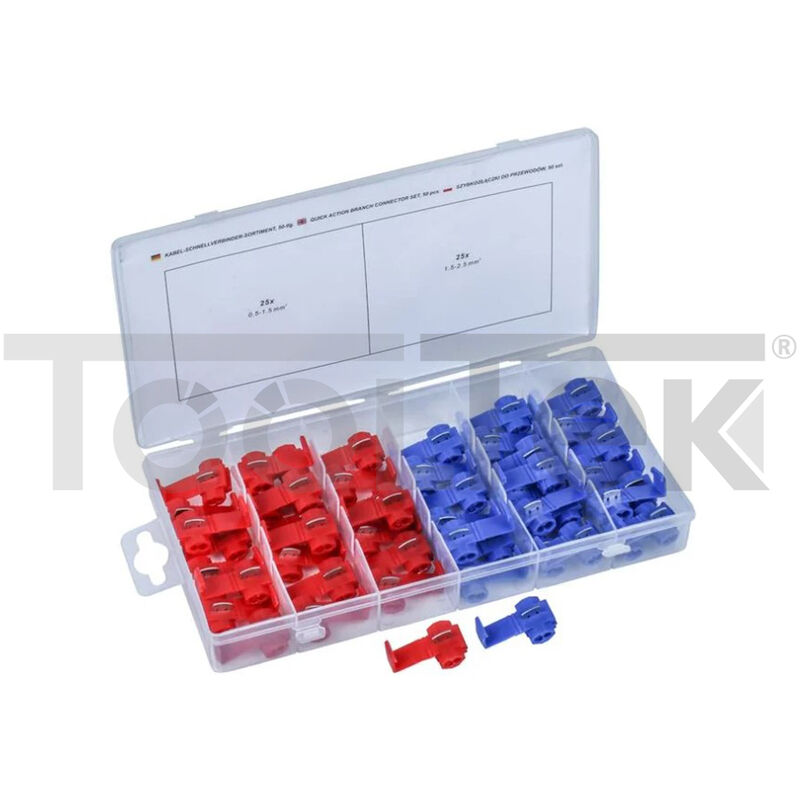 Assortimento connettori rapidi per cavo CONDOR Per creare connessioni di diramazioneIdeale per gancio di traino, fari supplementari, ecc.25 connettori per cavi con sezione 0,5 - 1,5 mm² 25 connettori per cavi con sezione da 1,5 - 2,5 mm² 50 pezzi Prodotto di qualità N.B. ATTENZIONE PER LA SARDEGNA ISOLE MINORI E LOCALITA' DISAGIATE C'E' UN SUPPLEMENTO SULLE SPESE DI TRASPORTO CHIEDERE INFO. LA FATTURA VIENE EMESSA PER ACQUISTI SUPERIORI A 20