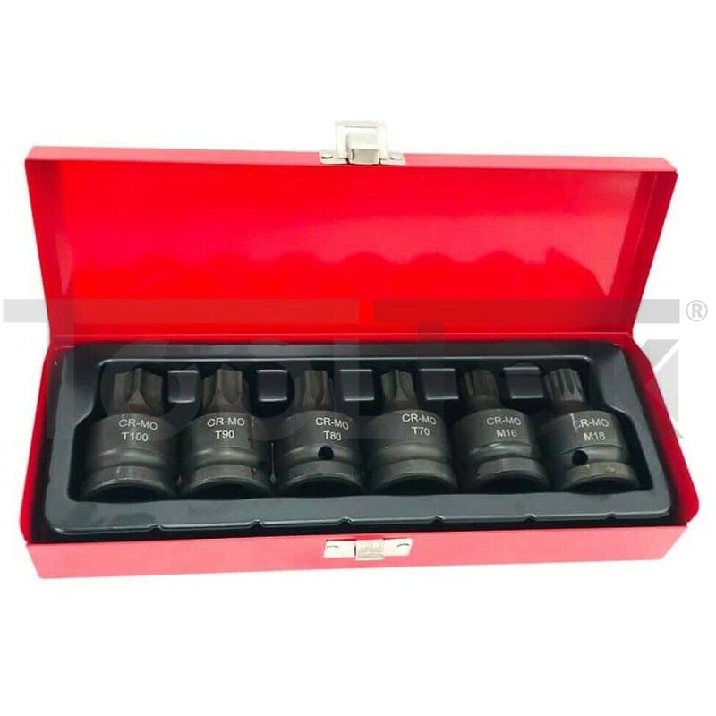 Set 6 bussole a impatto maschio 3/4 4 Bussole TORX: T70 T80 T90 T100 2 Bussole millerighe XZN: M16 M18 Prodotto di qualità
