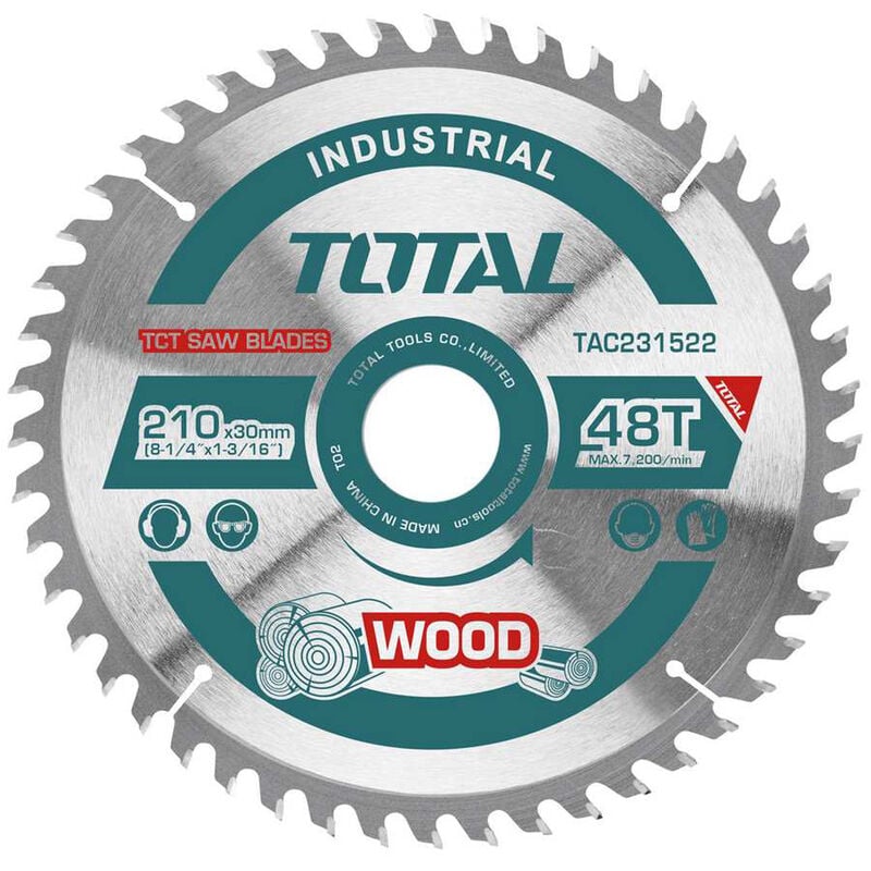 Disco per Troncatrice Legno TOTAL CARATTERISTICHE: Misure: 210mm(8-1/4″) Denti: 48 Arbor: 30mm Anello: 16mm - 25.4mm PRODOTTO CON GARANZIA Prodotto di qualità LA FATTURA VIENE EMESSA PER ACQUISTI SUPERIORI A 20 € E VA RICHIESTA NEL MOMENTO DELL' ACQUISTO