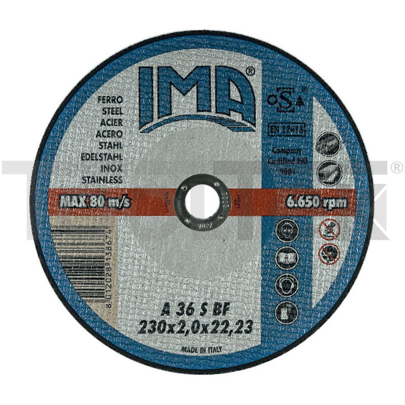 Dischi extra sottili a centro piano e depresso da taglio su macchine portatiliMateriale: ferro e acciaio inoxDimensioni: 115x1,0x22,23 mm Massima velocità d'uso: 80 m/s Prodotto di qualità