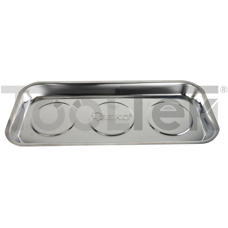 Vaschetta rettangolare magnetica 158x358mm. I magneti consentono di attaccare la scodella in un posto comodo e di fissare la scodella e le parti in essa conservate contro la caduta e il rovesciamento. I magneti a tazza sono fissati con gomma, che protegge la vernice dai graffi. La ciotola è realizzata in lamiera stampata a doppio spessore, cromata e lucidata. CARATTERISTICHE: Larghezza: 158mm Lunghezza: 358 mm Altezza: 35mm Profondità: 20mm Prodotto di qualità.