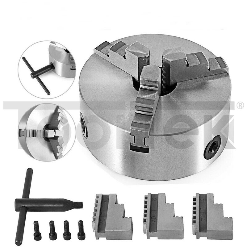 Il corpo del mandrino del tornio è realizzato in acciaio temprato di alta qualità e il test di durezza delle ganasce e delle guide è HRC 58-62.Mandrino autocentrante 3 griffe Per tutti gli usiMassima precisioneElevata forza di serraggio e stabilità nella perforazioneGriffe in acciaio temperato e rettificato tipo pesante Serraggio a 3 griffe Fornito con 3 griffe per interni e 3 griffe per esterni e chiave di manovra a TApertura massima: 200mm Il tutto contenuto in un box cartone Prodotto di qualità