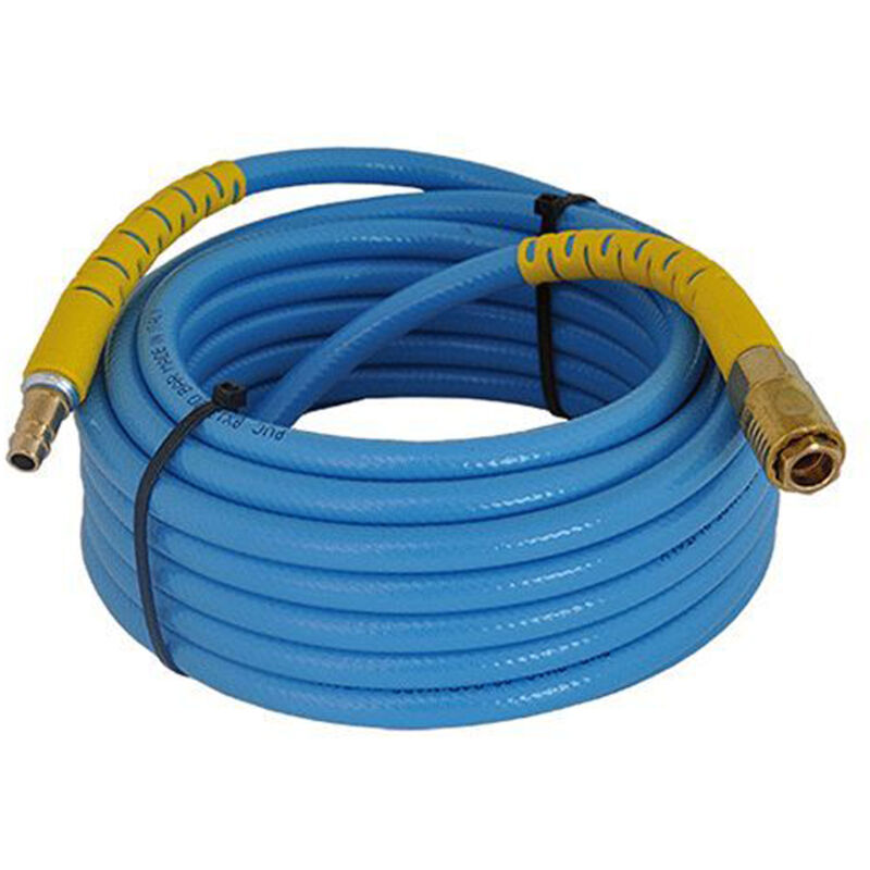 Tubo per aria compressa in PVC retinato e raccordato con attacco rapido. CARATTERISTICHE: Colore bluDiametro ø: int. 8 mm - est. 13 mm Lunghezza: 10 mt Materiale: PVC Attacco: rapido. Prodotto di qualità.