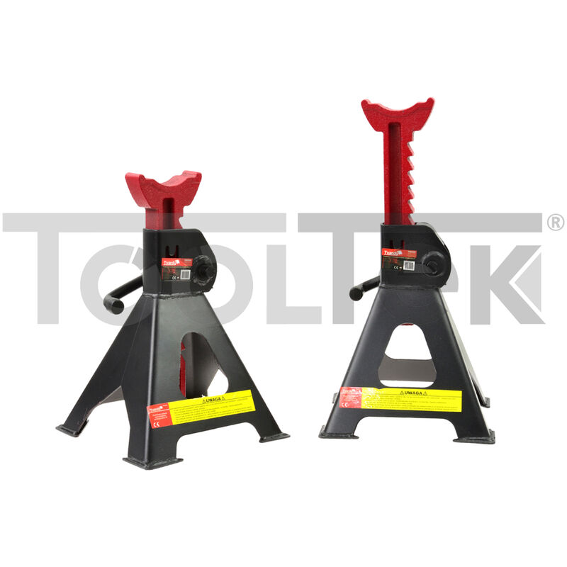 Coppia di supporti professionali per auto 3 Ton. Supporti molto robusti in lamiera d'acciaio spessa verniciata a polvere. Il meccanismo a cricchetto consente una regolazione precisa dell'altezza su più livelli. Il set viene utilizzato per supportare auto e altri dispositivi dopo averli sollevati con un martinetto. CARATTERISTICHE: Solida struttura in acciaioCertificato CE Capacità di carico: 3000 kg Altezza minima: 260 mm Altezza massima: 435 mm. Prodotto di qualità.