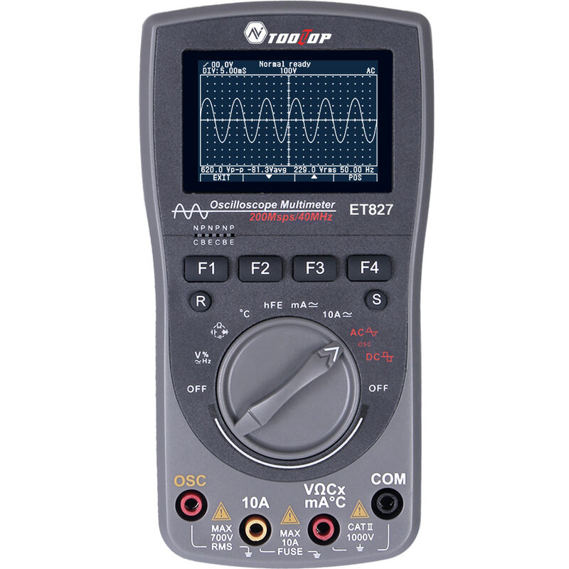 Design 2in1, questo prodotto integra ingegnosamente le funzioni dell'oscilloscopio digitale e del multimetro in un'unica macchina. Dotato di display LCD, con frequenza di campionamento 200MSps e larghezza di banda 80MHz. Progettazione di misurazioni multiple, supporto per misurare corrente continua e corrente alternata tensione/corrente, resistenza, capacità, frequenza, temperatura, rapporto diodo/duty, triodo, forma d'onda, test di continuità. Design a 3 modalità di scansione: Auto, Normale e Singola. Con un totale di 100 serie di dati e 50 forme d'onda possono essere salvate. Caratteristiche: Funzione 2 in 1: questo prodotto integra ingegnosamente le funzioni dell'oscilloscopio digitale e del multimetro in un'unica macchina , dall'aspetto conciso, leggero e portatile, facile da trasportare e con una sensazione di mano confortevole. Frequenza di campionamento e larghezza di banda: l'oscilloscopio ha una frequenza di campionamento ad alta velocità in tempo reale di 200 Msps, larghezza