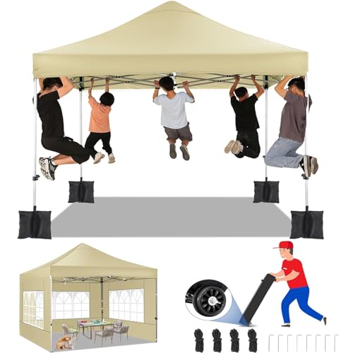 TOOLUCK Gazebo pieghevole 3 x 3, impermeabile, stabile, resistente all'inverno, 2.0, per esterni, pieghevole, protezione UV 50 + 3, regolabile in altezza, tenda per feste con 4 parti laterali e 4