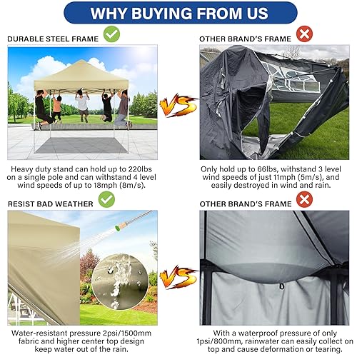 Facile da configurare, 3 posizioni di altezza: 1-2 persone possono essere configurate rapidamente in breve tempo, senza bisogno di attrezzi. E offrono 3 altezze regolabili, la gamma regolabile va da 310 cm a 319 cm a 328 cm, adatta a diversi scenari di utilizzo, è possibile personalizzare il baldacchino secondo i vostri desideri. Questa tettoia commerciale è adatta per eventi all'aperto