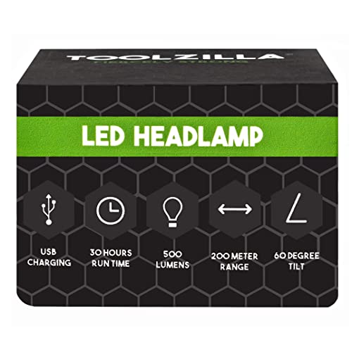 TOOLZILLA Lampada da Testa LED, Ricaricabile USB Torcia Frontale (Corsa, campeggio, bricolage, pesca, commercio, passeggiate)