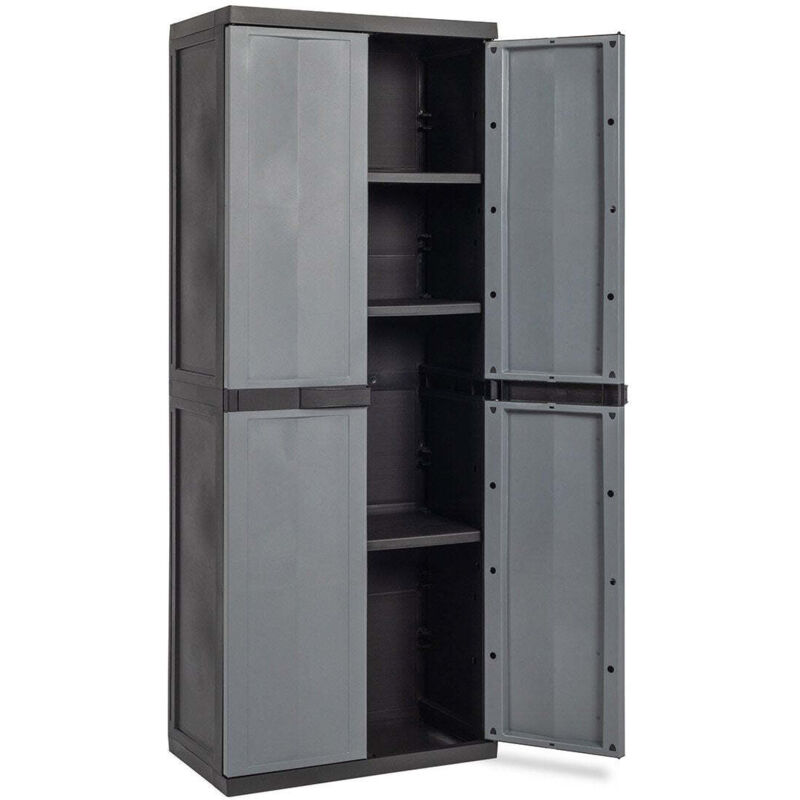 Armadio a 2 ante con 3 ripiani posizionabili a diverse altezze - per interni - fissare a muro - portata max. per ripiano kg.20 - lucchettabile - resistente ai raggi uv - materiale per il fissaggio a parete non fornito - pulire con acqua e sapone.