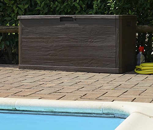 Toomax Multibox Woody's portattrezzi da esterno effetto legno, baule da 280 litri, colore marrone.