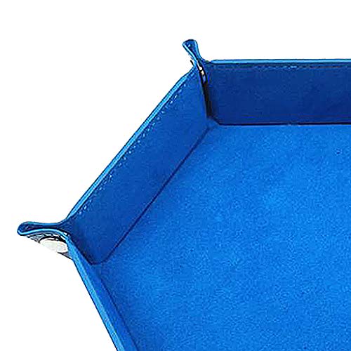 T TOOYFUL Esagonale Dadi Vassoio, Facile da trasportare, Dadi in Pelle Pieghevole Vassoio con Flanella all'Interno, Dadi Giochi da Tavolo Scatola Titolare di - Blu