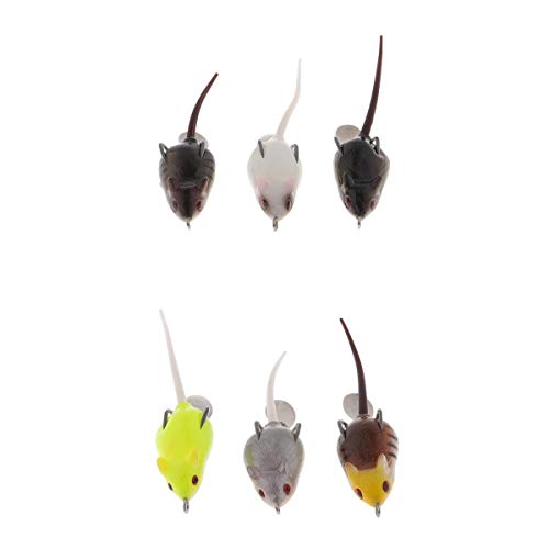 T TOOYFUL 6 Pezzi Soft Mice Bait Rat Lure Mouse Top Water Fishing Lure Bass Crankbait 10g