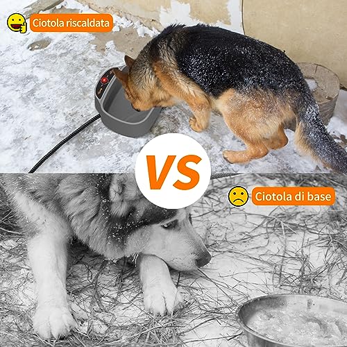 Regolazione della temperatura a 2 livelli - La ciotola riscaldata Toozey adotta un'innovativa regolazione della temperatura a 2 livelli. Il livello basso è consigliato per l'uso sopra i -10℃ per evitare l'acqua calda, poiché i cani non amano bere acqua troppo calda;