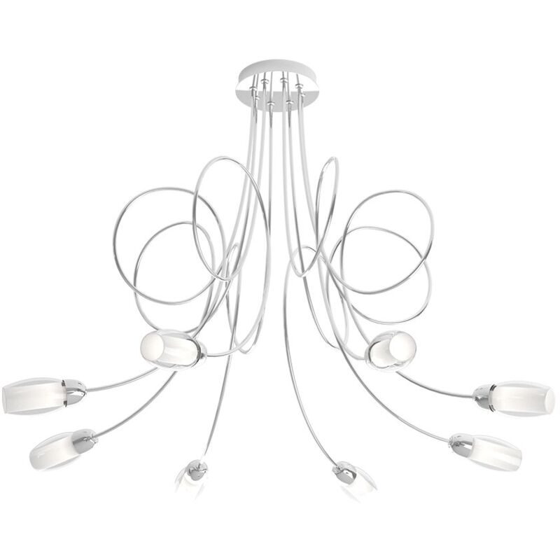 Collezione Feeling Net LUCE CHE SI PIEGA ALLE TUE ESIGENZE Plafoniera 8 luci con struttura formata da tubi rigidi curvati aventi linee morbide ed essenziali di colore cromo.. Il vetro etro Pyrex è ovale e trasparente con un tubo interno satinato. Il prodotto monta lampadina tipo G9.Questo articolo è disponibile in diverse finiture e/o dimensioni. E' possibile indicarlo nell'apposito campo NOTE presente in conclusione di ordine oppure contattarci dopo aver effettuatol'ordine.