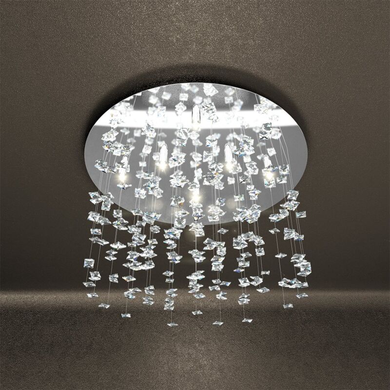 Collezione Flare LA LUCE CHE RIFLETTE SU SE STESSA Plafoniera 8 luci composta da struttura metallica cromata che sorregge dei cristalli quadrati da 20x20mm disposti in file di lunghezze differenti.. Queste lampade hanno un design elegante e raffinato, che valorizza la luce e il colore. La molatura dei cristalli e la finitura cromata dei metalli creano migliaia di effetti cromatici di riflesso, che rendono l'ambiente dove vengono installati raffinato ed elegante. La Collezione Flare è disponibile in diverse dimensioni e forme, per adattarsi a ogni ambiente e a ogni gusto. Scopri la Collezione Flare e lasciati incantare dalla sua bellezza e qualità.Questo articolo è disponibile in diverse finiture e/o dimensioni. E' possibile indicarlo nell'apposito campo NOTE presente in conclusione di ordine oppure contattarci dopo aver effettuatol'ordine.