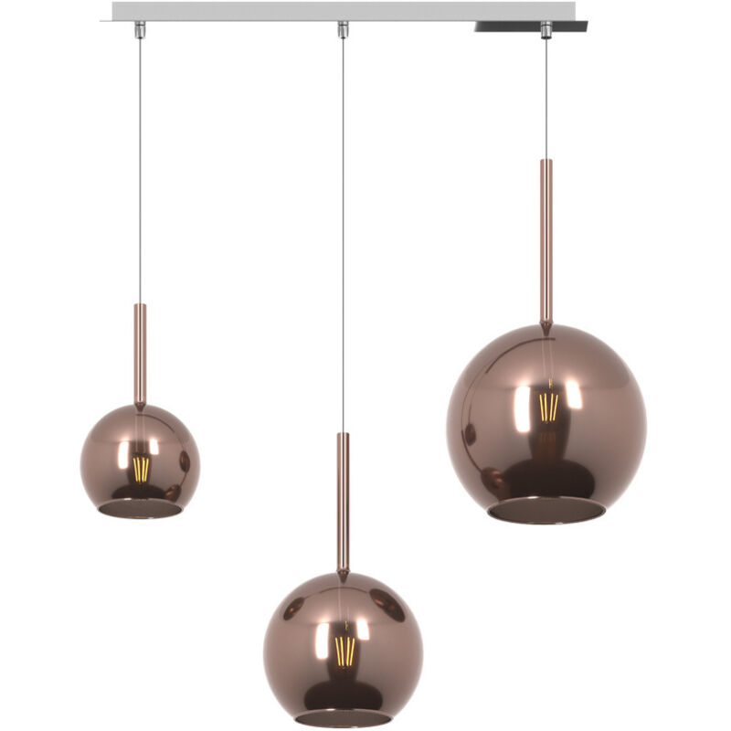 Collezione Future IL FUTURO DELLA LUCE È ADESSO Sospensione 3 luci dal rosone lineare e rettangolare con struttura in metallo finitura cromo e da 3 vetri tutti differenti nelle dimensioni colore rame.. Le finiture dei vetri cromo, rame, oro e ambra sono trattamenti superficiali che riducono solo parzialmente l'emissione luminosa. La finitura trasparente può essere naturalmente abbinata alle altre. Le strutture in metallo sono disponibili nelle finiture cromo, bianco e ottone satinato, con il diffusore in vetro disponibile in tutte le finiture esistenti.Possibilità di creare una composizione componibile in base ai componenti della sospensione scelti.Questo articolo è disponibile in diverse finiture e/o dimensioni. E' possibile indicarlo nell'apposito campo NOTE presente in conclusione di ordine oppure contattarci dopo aver effettuatol'ordine.