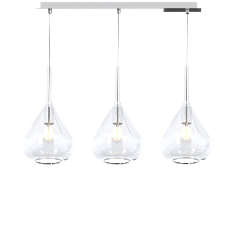 Collezione Kona LAMPADA MODERNA CHE CATTURA LO SGUARDO Sospensione 3 luci con struttura in metallo color cromo, un rosone rettangolare lineare e 3 vetri pirex soffiato di colore trasparente come diffusore.. Le finiture dei vetri disponibili sono trasparente, verde, blu, fumè ed ambra. Le strutture in metallo sono disponibili nelle finiture cromo, bianco e ottone satinato. Nella confezione sarà compreso il portalampada nelle finiture cromo, otttone satinato e bianco, dove il cliente al momento dell' installazione sarà libero di scegliere il colore desiderato.Questo articolo è disponibile in diverse finiture e/o dimensioni. E' possibile indicarlo nell'apposito campo NOTE presente in conclusione di ordine oppure contattarci dopo aver effettuatol'ordine.