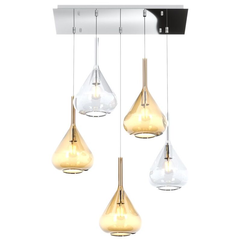 Collezione Kona LAMPADA MODERNA CHE CATTURA LO SGUARDO Sospensione 5 luci con struttura in metallo color cromo, un rosone rettangolare e 5 vetri pirex soffiato colore trasparente ed ambra come diffusore.. Le finiture dei vetri disponibili sono trasparente, verde, blu, fumè ed ambra. Le strutture in metallo sono disponibili nelle finiture cromo, bianco e ottone satinato. Nella confezione sarà compreso il portalampada nelle finiture cromo, otttone satinato e bianco, dove il cliente al momento dell' installazione sarà libero di scegliere il colore desiderato.Questo articolo è disponibile in diverse finiture e/o dimensioni. E' possibile indicarlo nell'apposito campo NOTE presente in conclusione di ordine oppure contattarci dopo aver effettuatol'ordine.